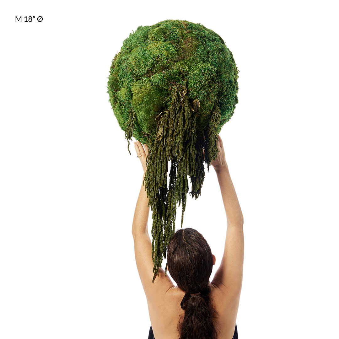 These preserved moss spheres are designed to transform a space with their soft, natural, sculptural presence.