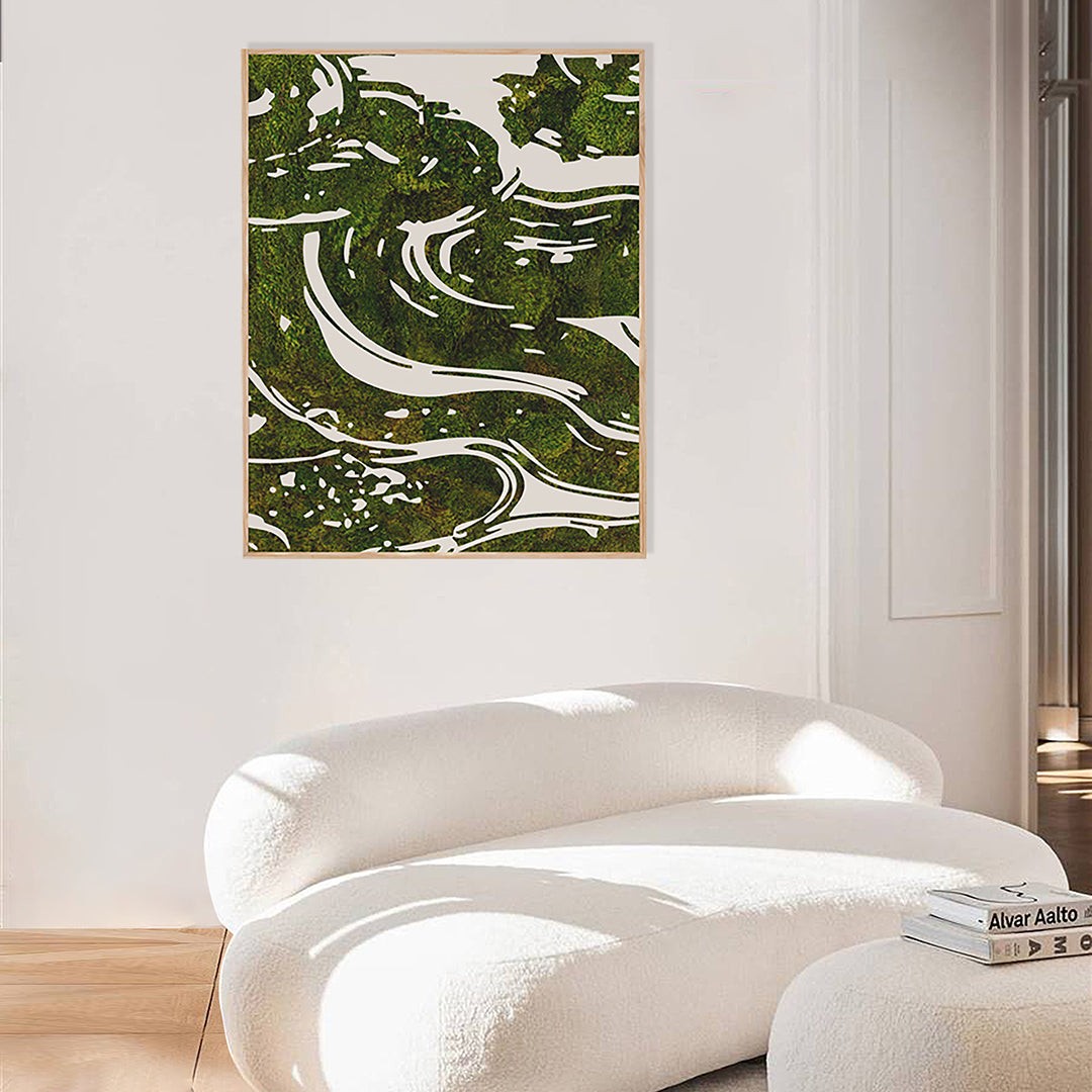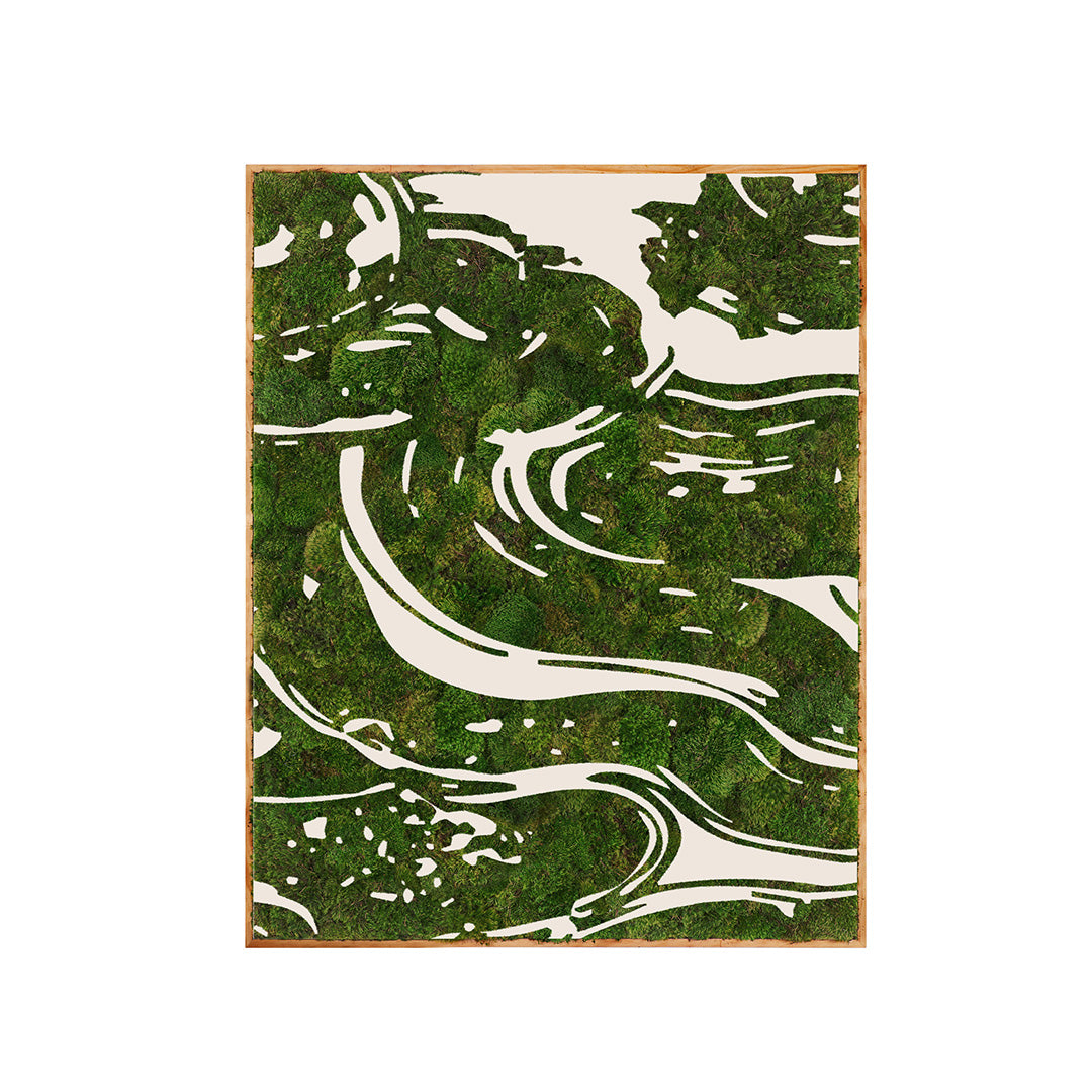 "Organic Flow (2024)” is a series of original framed moss art pieces. The art is inspired by the flow we find in nature and all its forms, particularly the flow of rivers and the connection with fresh water from Mother Nature.