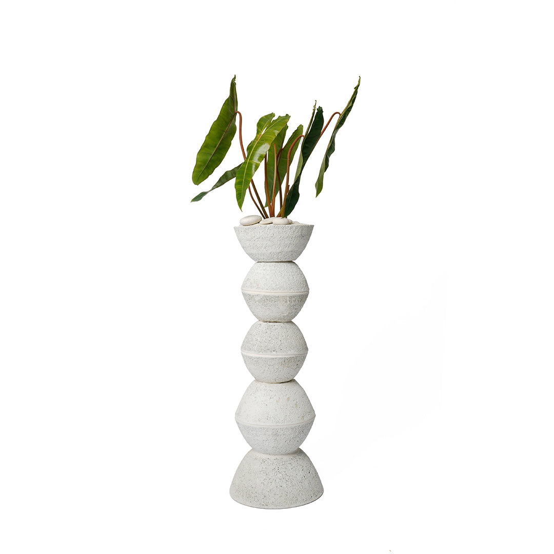 Paired with the lush, elongated leaves of the Philodendron Billietiae, this piece brings a dynamic balance of organic beauty and architectural design. Available in distinct heights, the Totem Sculptures allows for customization to fit your space, whether as a standalone statement or grouped for a captivating visual arrangement.